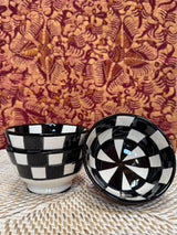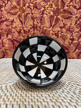Hand painted in Fez, Morocco - these graphic black and white checkerboard pattern bowls are perfect for sauces, dips and nuts. Use them on a charcuterie board for a whimsical touch of Moroccan style.