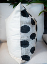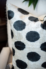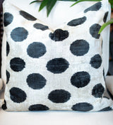 Black and White Bold Polka Dot Silk Velvet Ikat Pillow