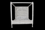 Artfully crafted in India, this Carved Canopy Bed features intricate hand-carved details enhanced by a refined white-washed finish. The subtle patina accentuates the bed's ornate textures while imparting a serene, weathered elegance that complements sophisticated interiors with understated luxury and timeless charm.