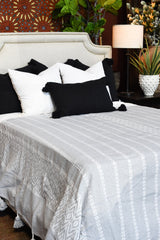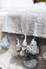 Pompom Blanket - Grey and White Jacquard Loom Pattern