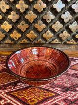 Subtle hand painted black and red designs decorate the inside of these beautiful bowls crafted in Safi, Morocco.  Food safe and perfect for everyday use, please do hand wash to keep these beauties from chipping in the dishwasher.  It's worth the extra time when they are this gorgeous!