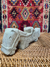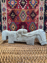 Hand carved sandstone horse and rider from Timor, Indonesia, we always believe that every room can use a whimsical critter - this horse and rider is fabulous inside or out on a table or shelf.