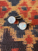 Beautiful rainbow moonstone earrings set in sterling silver are the perfect wear everyday accessory.  Hand made in Jaipur, India.