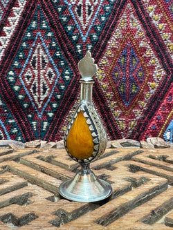 These tiny bottles are replicas of antique kohl eyeliner containers from centuries past. A small bone wand attached to the handle at top would have allowed one to dip into a pot of kohl and delicately draw on a dramatic cat eye! Made from camel bone and silvered metal.