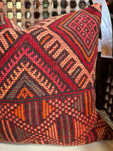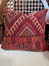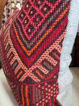 Handwoven in the Atlas Mountains of Morocco, this pillow is made from a Beni Mguild kilim.  Back is a neutral cotton with a full zip.