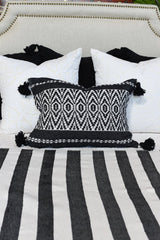 This Moroccan graphic black and white pattern is woven on a special Jacquard loom.   Pillows are the same fabric front to back and have a hidden side zip.