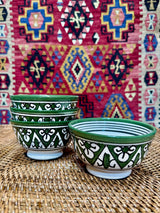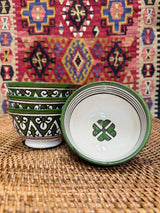 Hand painted in Fez, Morocco, these lovely green and white bowls are beautiful for everyday treats - or put them out with a bread board for nuts and sauces.