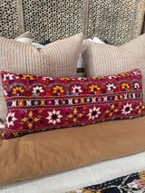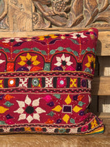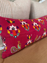 Gujarati Embroidered Red Long Lumbar Pillow