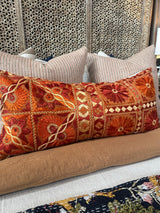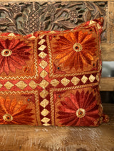 Indian Embroidered Pillow in Vivid Orange