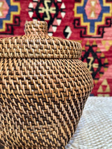 This small handwoven basket box is a perfect decorative storage containers desktops. Hand made in Lombok, Indonesia.