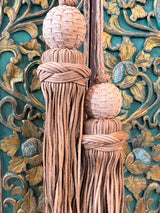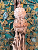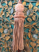 Made in the famous tanneries of Marrakech, Morcco, these large leather tassels make dramatic tie backs for curtains, or fabulous accessories hanging on bannisters or hooks.