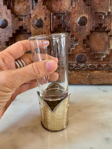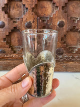 These famous tea glasses are used throughout Morocco for traditional mint tea. The metal sleeve removes for easy washing and they are popular for use as a votive holder or a quick sip.
