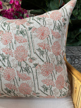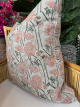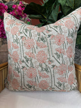 Pink Dahlia Blockprint Linen Pillow