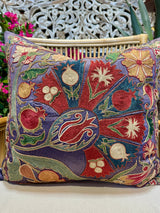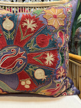 Suzani Pillow in Purple and Grey Silk