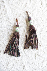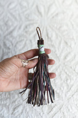 Handmade in Morocco, these leather tassels make perfect key chains, or decorations on purses. We also love to loop them over lamp switches, or tieing them onto trunk latches. They are great gifts and look fantastic tied onto a package.