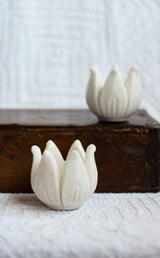 These marble lotus votives are such graceful little things! Hand carved out of solid marble, they are perfectly sized for small votive candles.